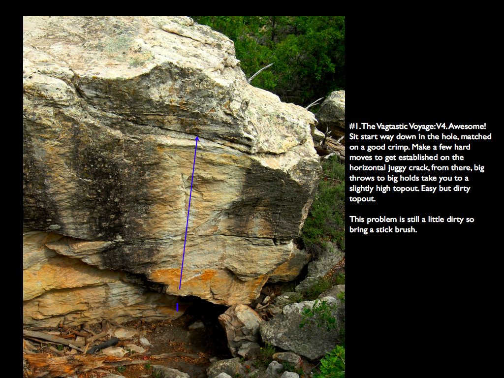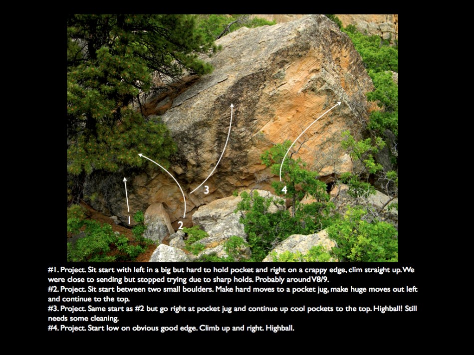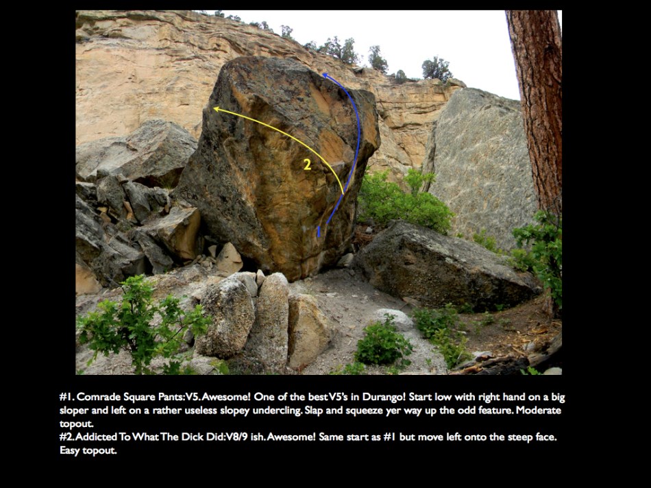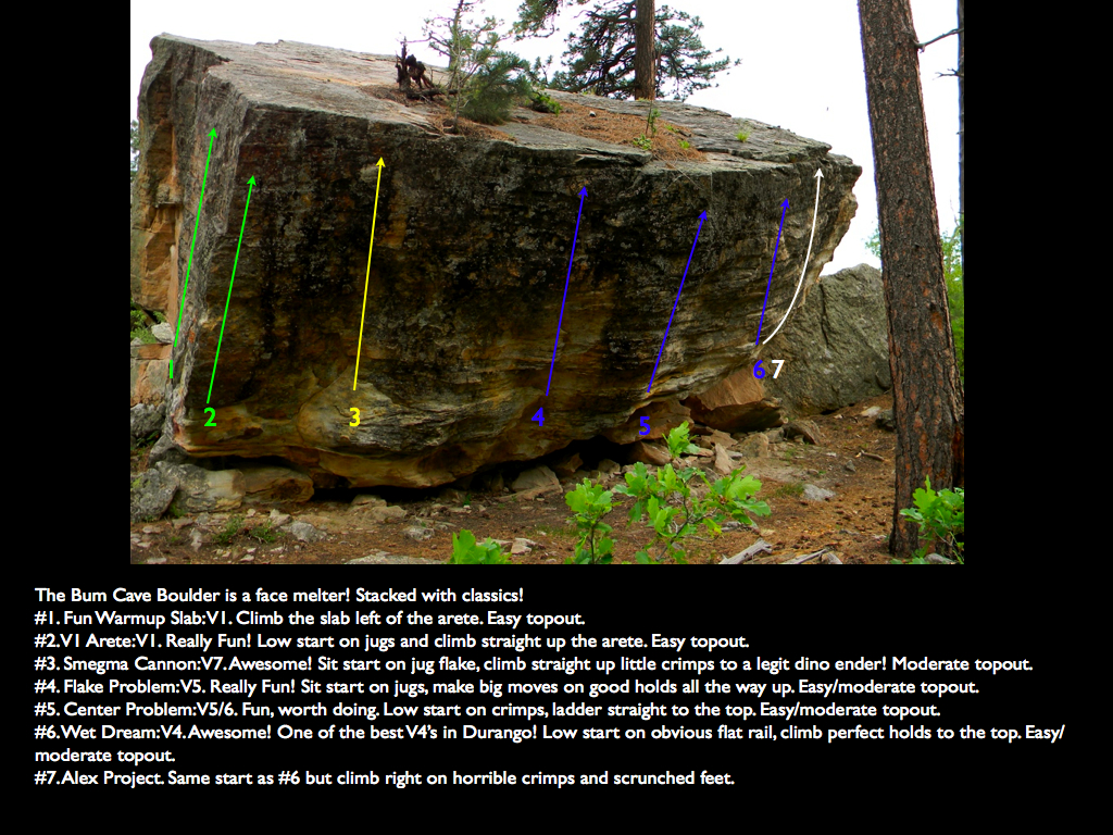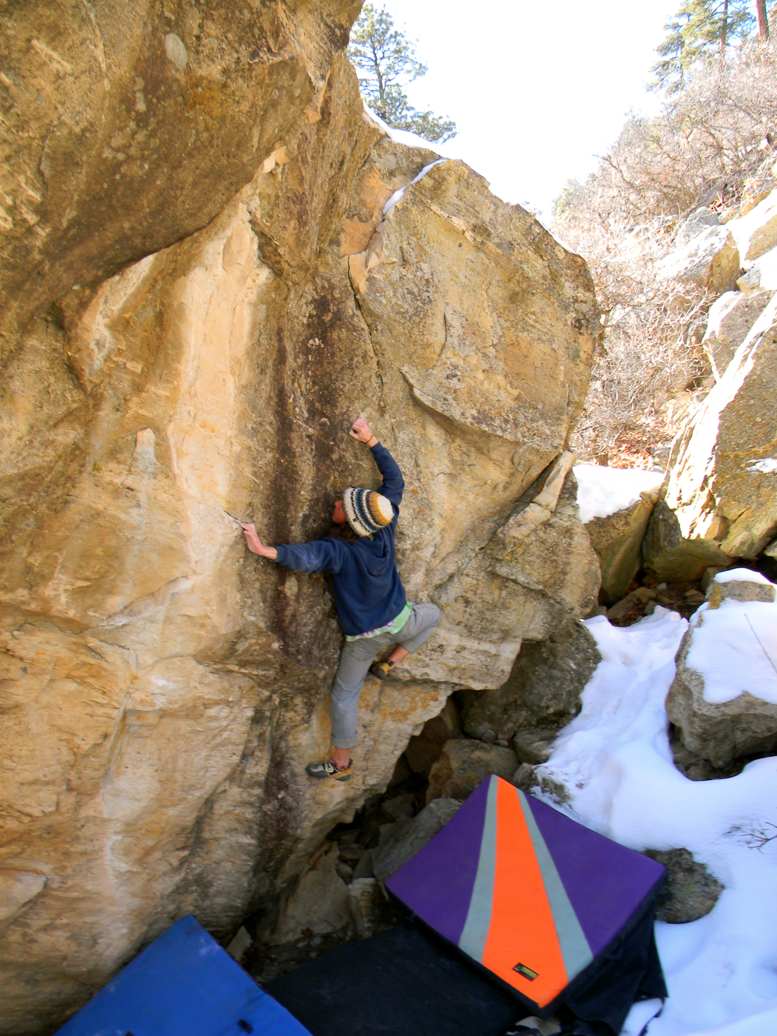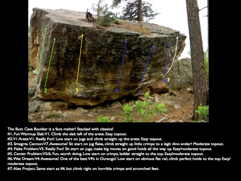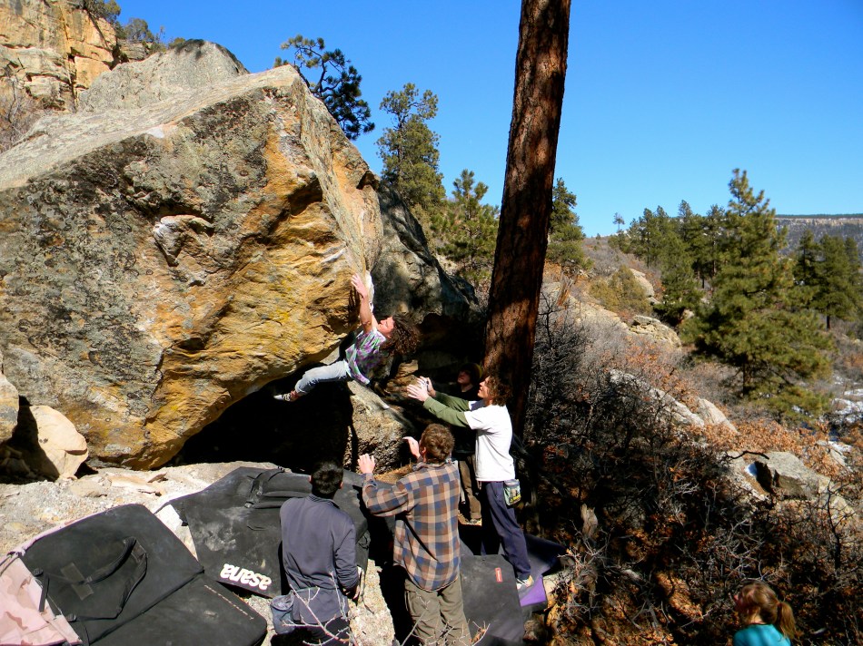 4. Problem #1 on boulder c, the project, was done last week by a visiting climber. Don’t know who brought him up there, but why are visiting climbers sending projects in Durango?